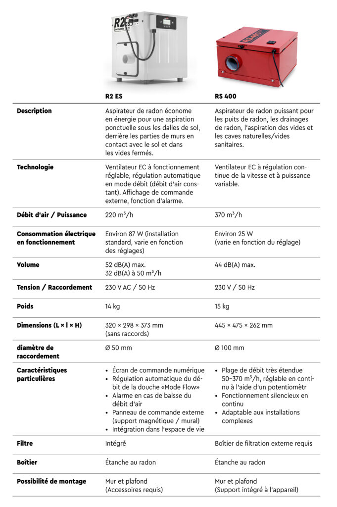 Les deux aspirateurs de radon remplissent leur fonction de manière fiable – mais de façon différente. Le choix dépend donc moins de l’appareil lui-même que de votre situation d’installation concrète. Le meilleur choix est toujours celui qui correspond à votre situation.